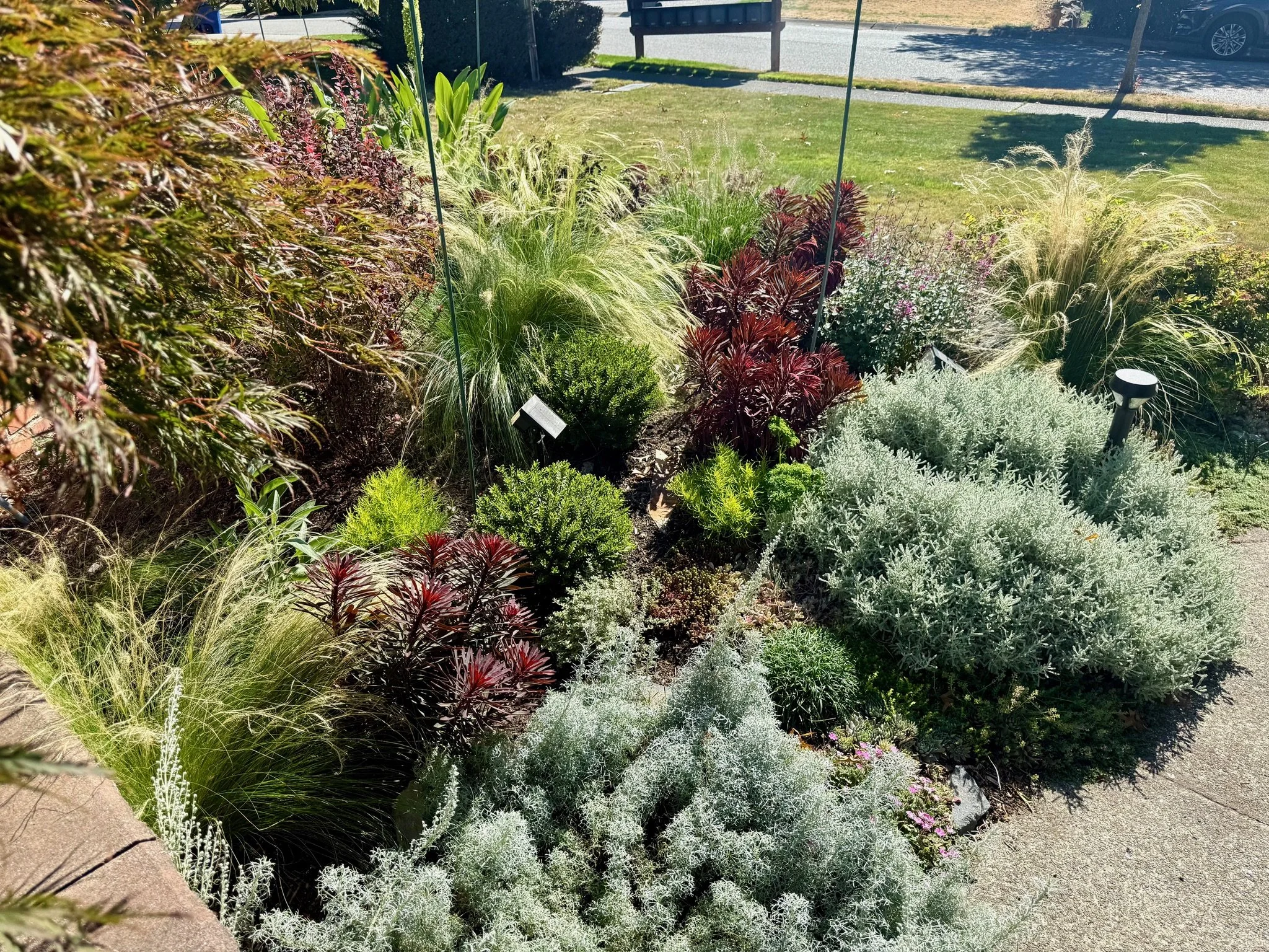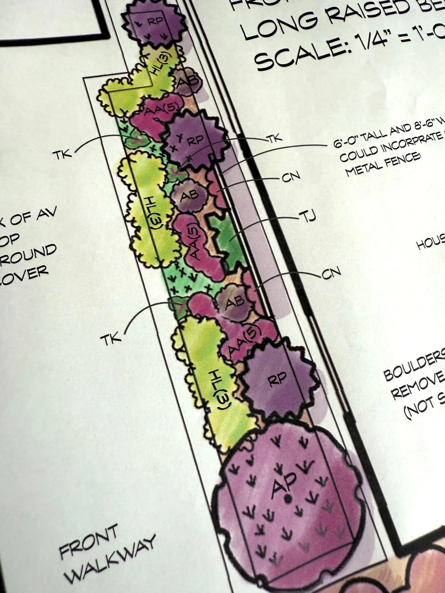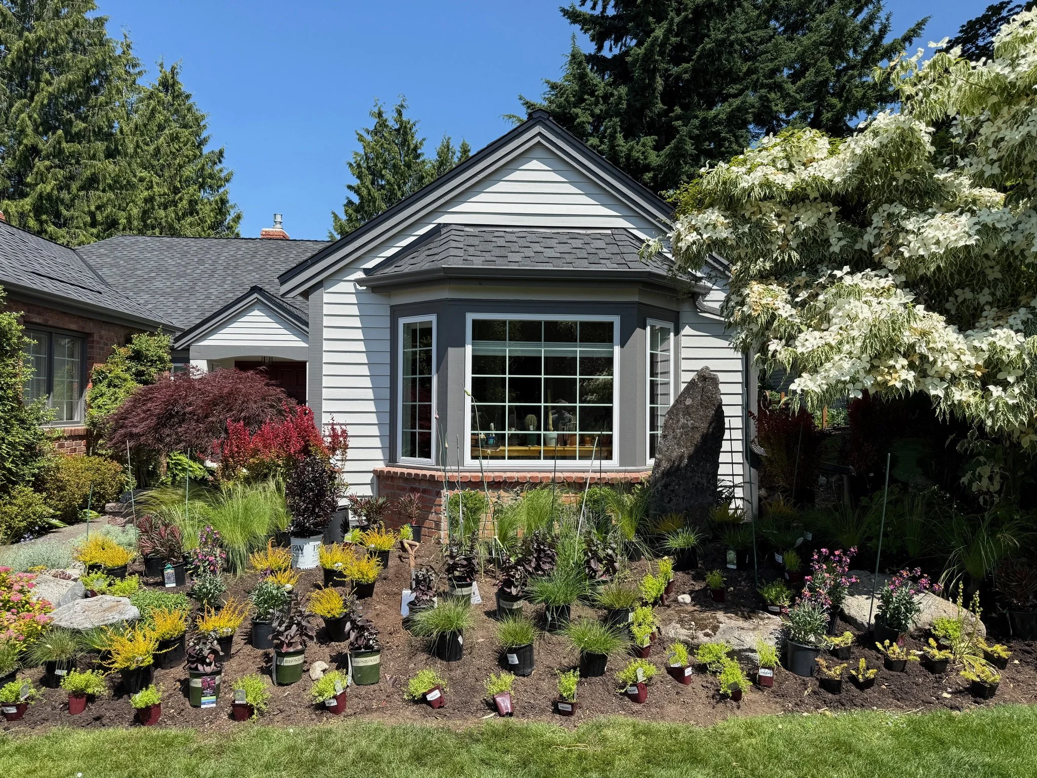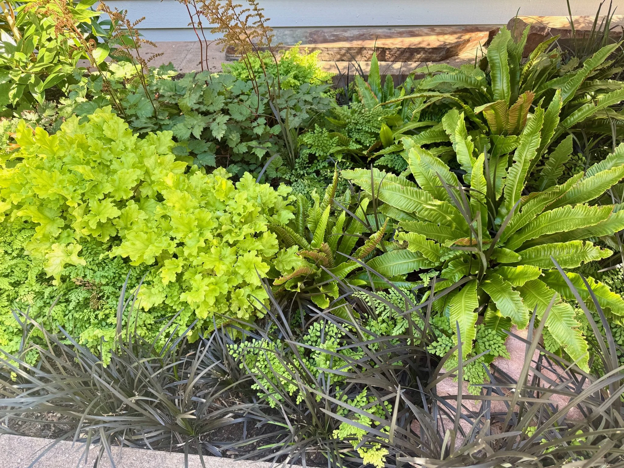 This garden overflowed with beautiful plants but lacked a clear sense of cohesion—something we often see in spaces tended by enthusiastic gardeners. Our clients wanted a more unified design that still felt dynamic and personal, not predictable or dull. By introducing a jewel-toned palette that carries through the seasons, we created rhythm and contrast that break up the wall of green while giving the garden a stronger, more intentional identity.