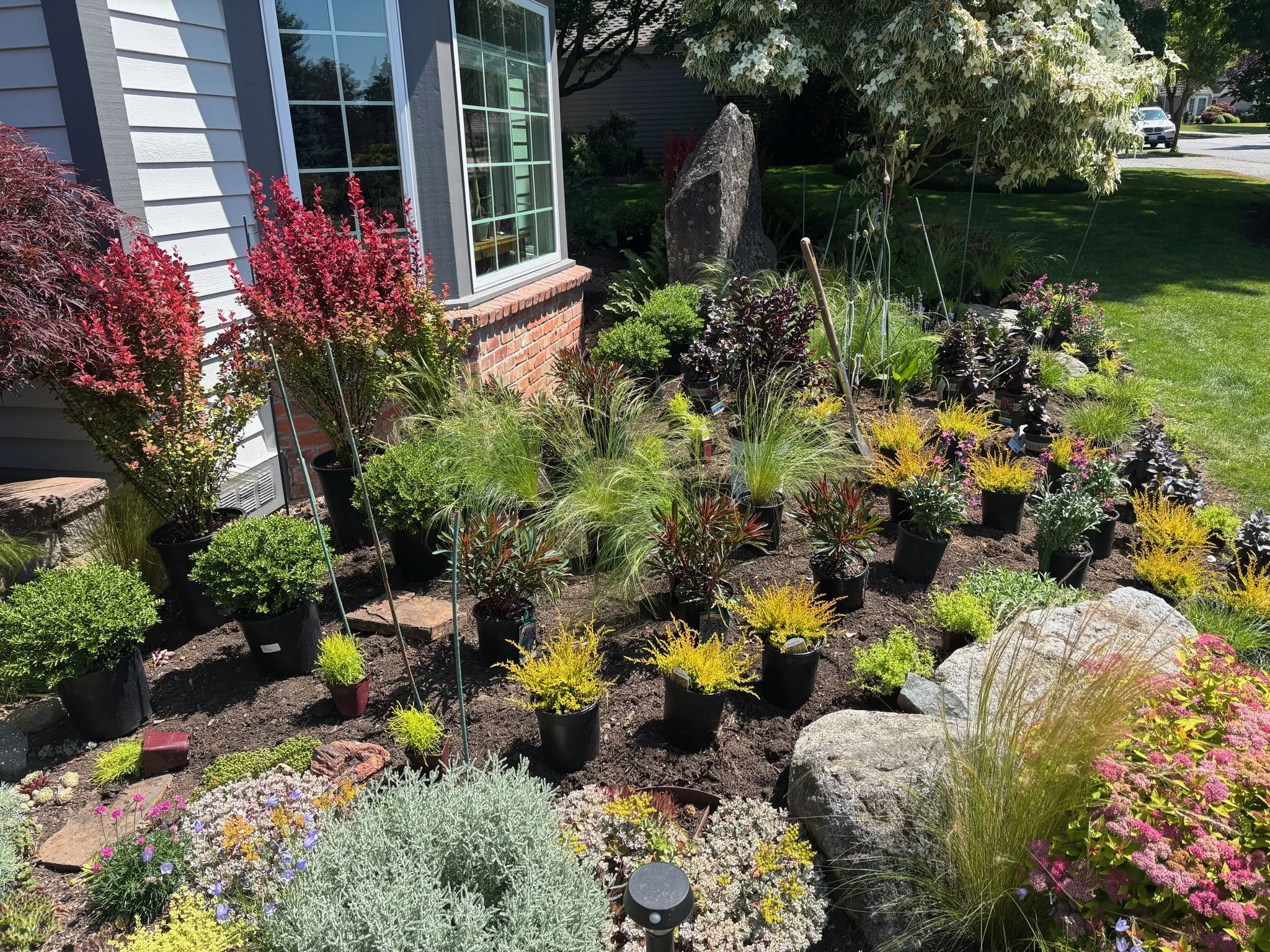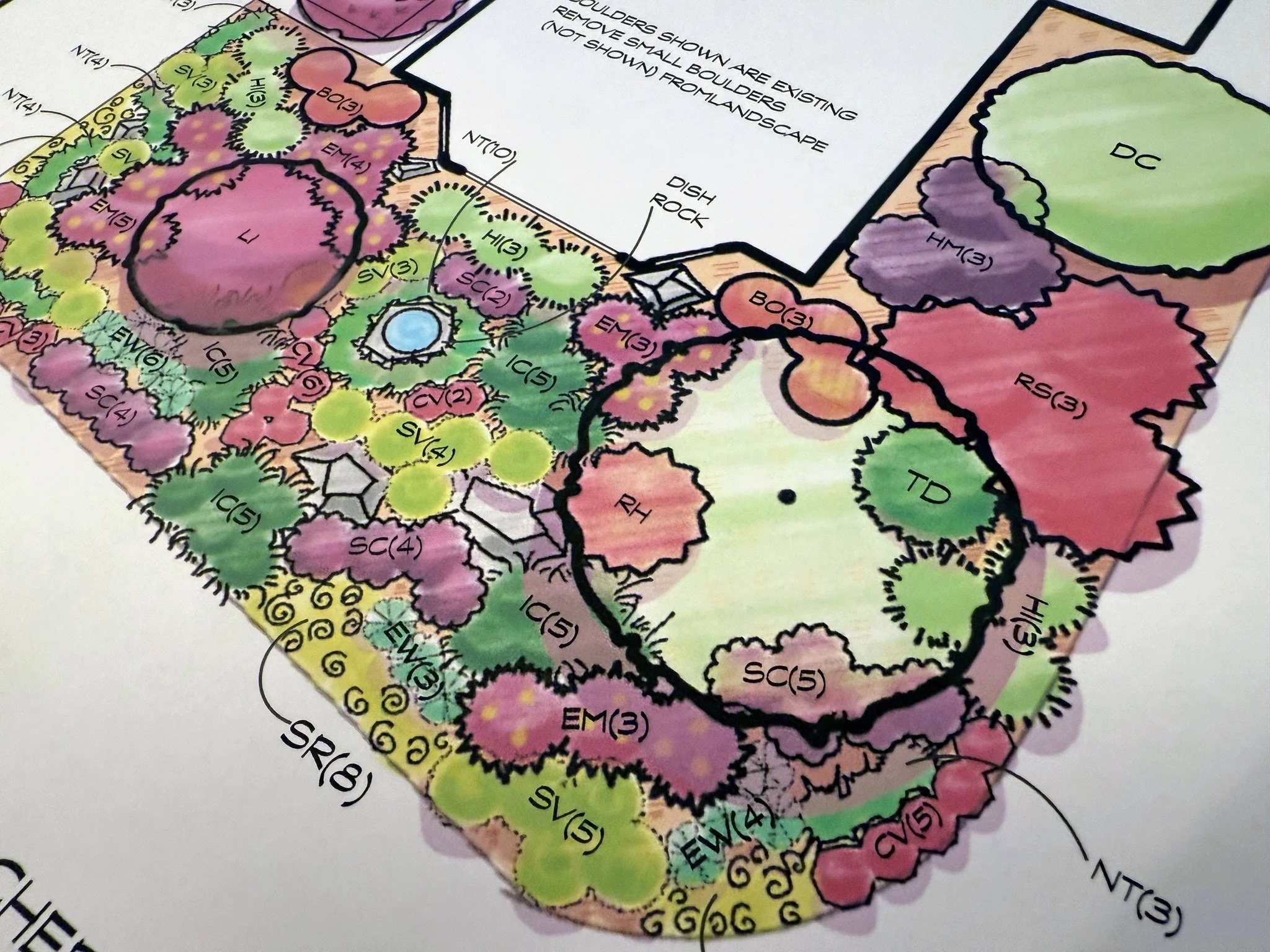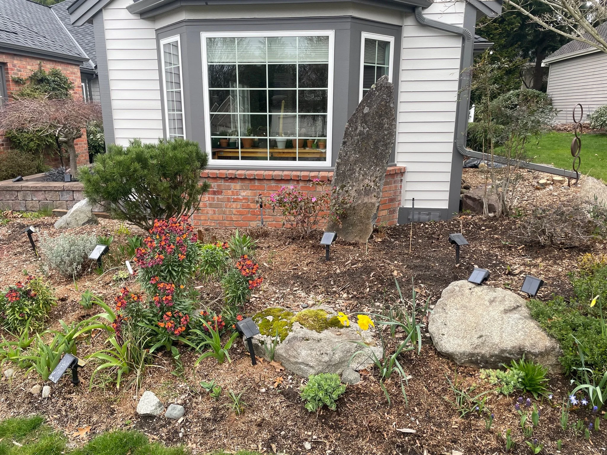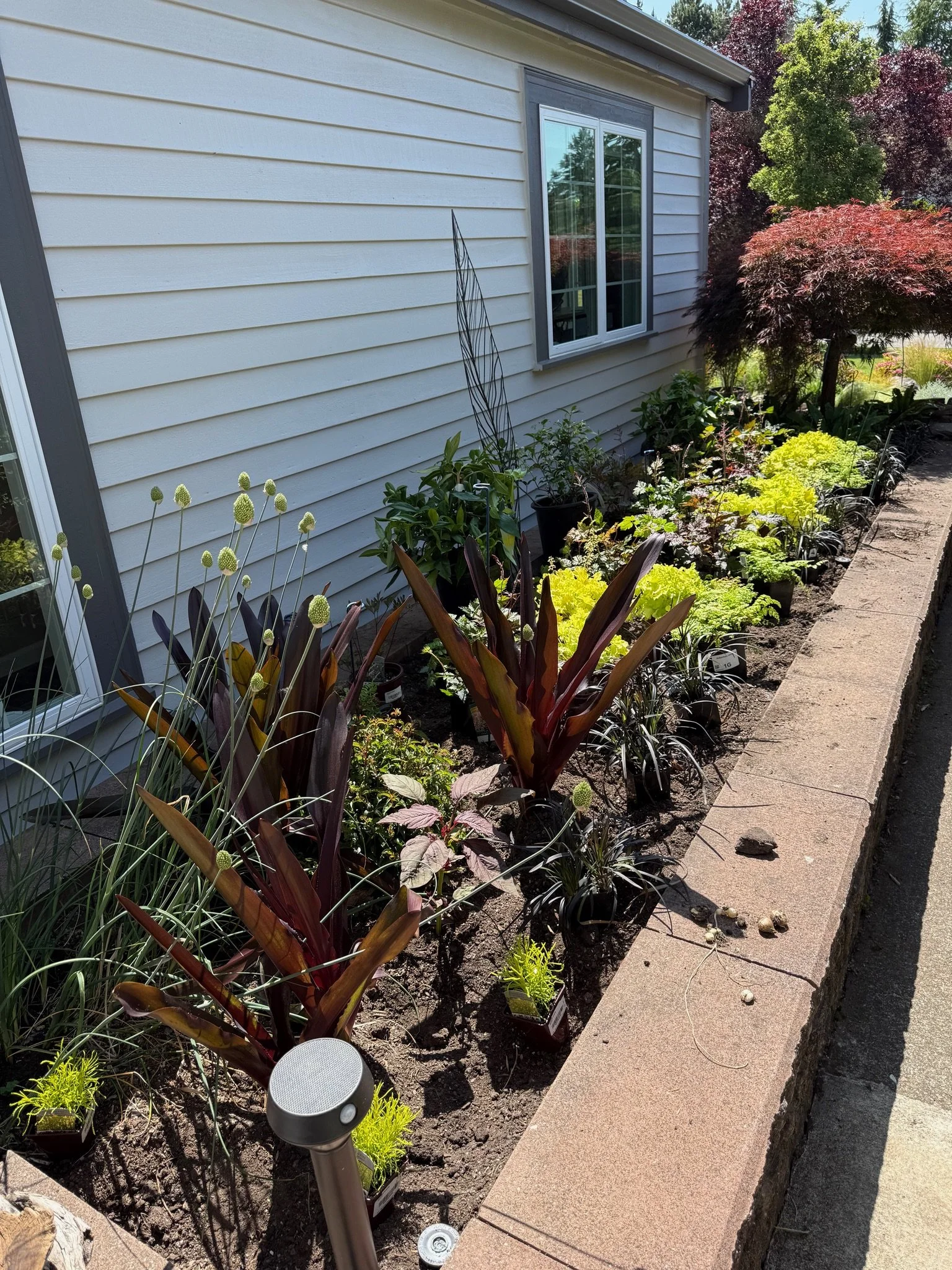 This garden overflowed with beautiful plants but lacked a clear sense of cohesion—something we often see in spaces tended by enthusiastic gardeners. Our clients wanted a more unified design that still felt dynamic and personal, not predictable or dull. By introducing a jewel-toned palette that carries through the seasons, we created rhythm and contrast that break up the wall of green while giving the garden a stronger, more intentional identity.